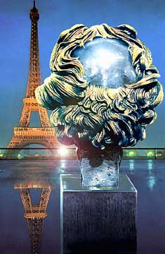 einer Portraitbüste in Paris gegenüber des Eiffelturms
